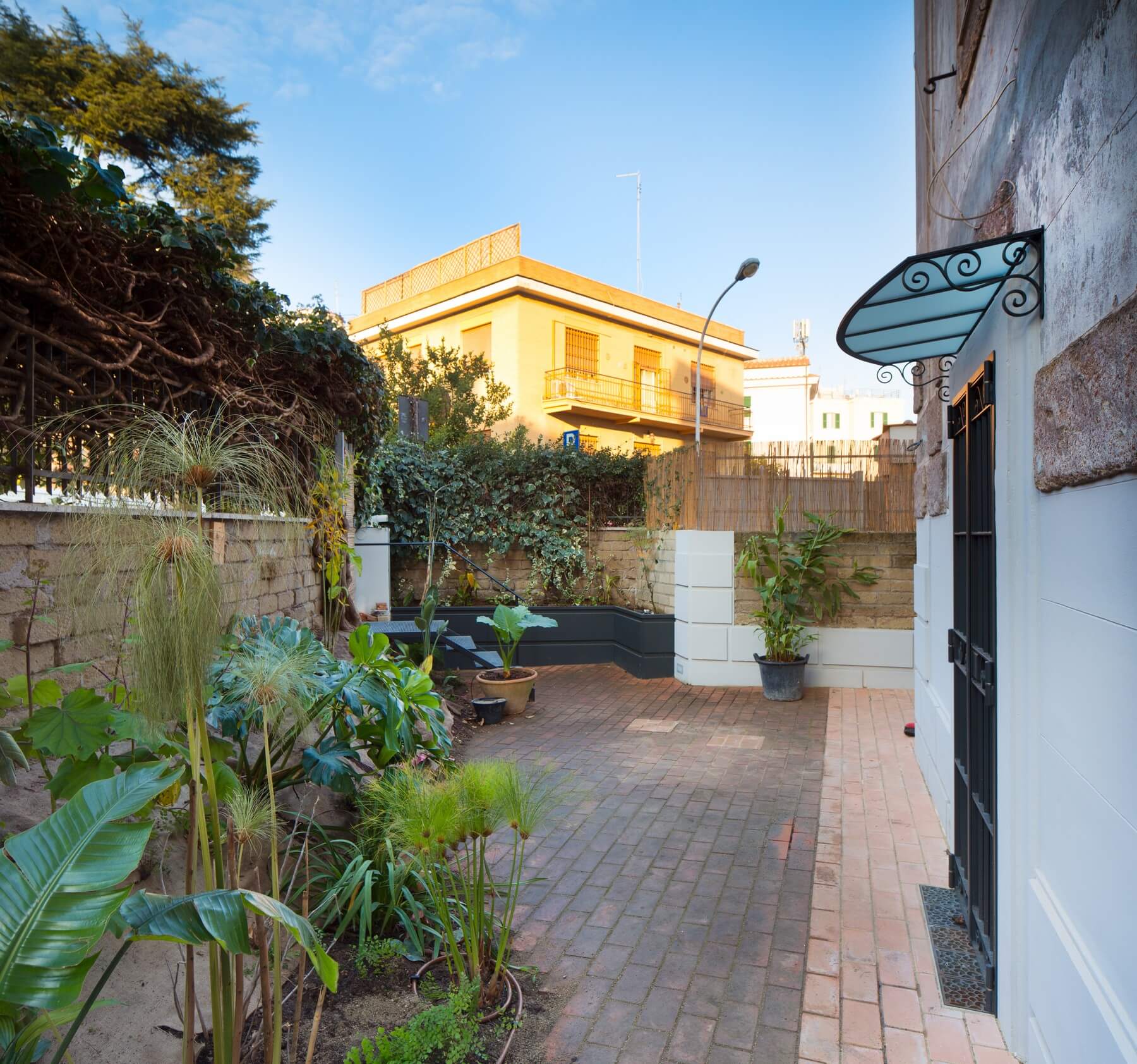 Si accede all’abitazione con ingresso dalla strada allo stesso livello del giardino.