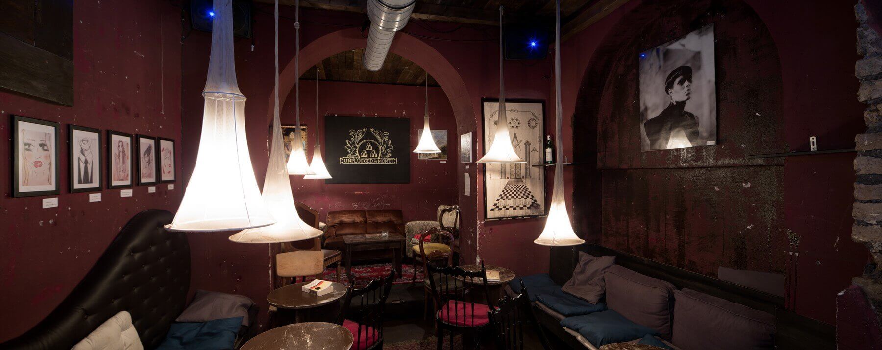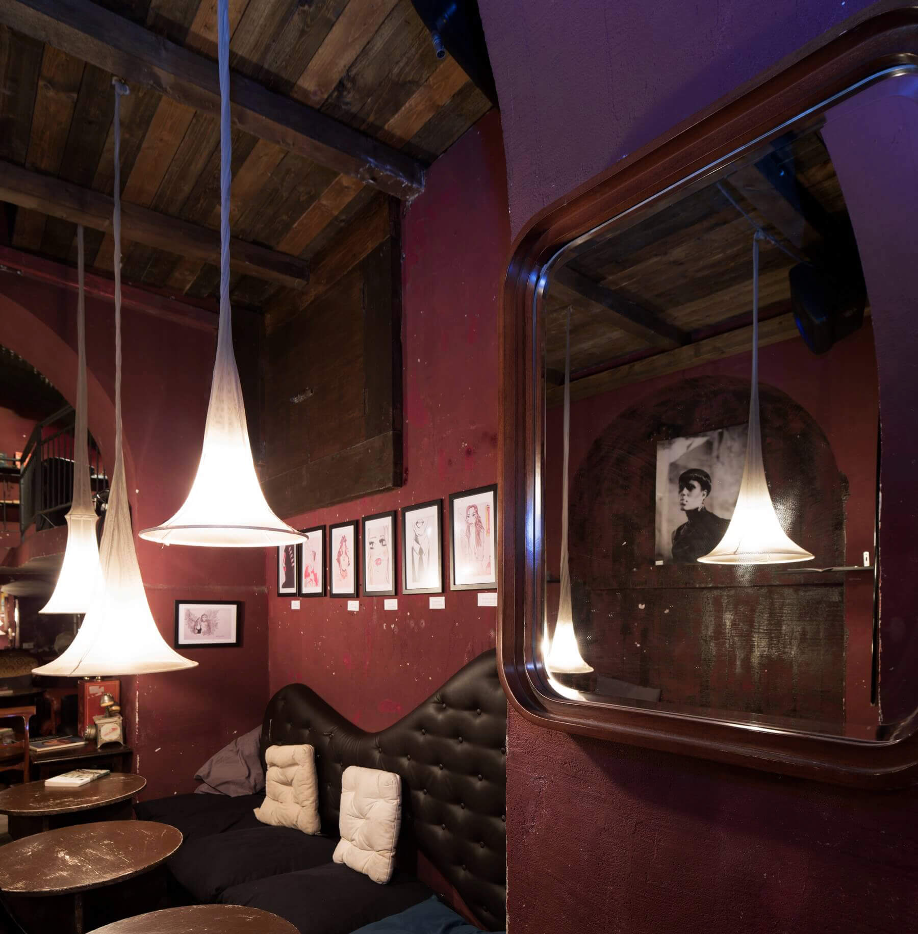 El proyecto se resolvió con el diseño y la construcción de lámparas que decoraban y vestían la sala de espacio reducido. Las lámparas fueron diseñadas en tela elástica permitiendo que tomen forma según su propio peso. La posibilidad de regular la altura de las lámparas sobre las mesas crea un juego arquitectónico y la flexibilidad necesaria en el caso de un concierto donde la atencion está enfocada en el escenario, situado en el fondo de la sala.